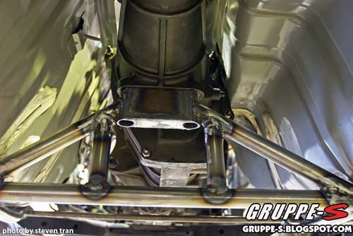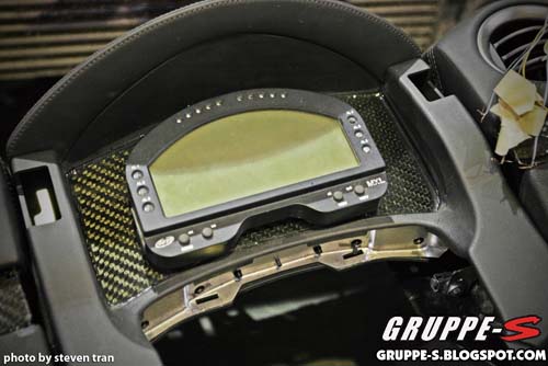 至於傳動方面,使用一具四速序列式變速箱,由於R35 GT-R的變速箱位置在車尾而非車頭,而VQ引擎變速箱位置在前,因此在固定變速箱上花了不少功夫,此外,為了安裝VQ引擎,該車也換上了350Z的底盤部分套件。內裝方面全數拆空、去膠、點焊並焊上防滾架,儀錶板也進行賽車化的配置。
