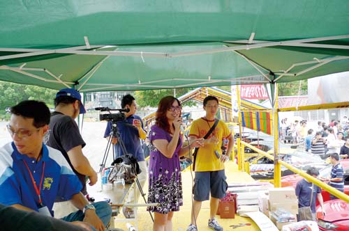 | 摸彩活動一開始,只見大家一窩蜂的往頒獎台移動,並且紛紛拿出相機拍起照來,且頒獎得SG還是臨時從車友中找出來,讓大家看看哪家 的女王最漂亮,而在頒獎台上穿黃色上衣的人就是BMWCCT的會長-阿吉。 |