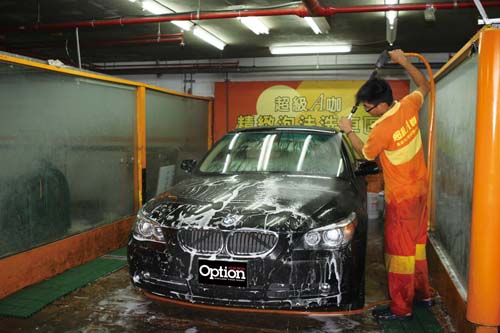 | 超級A咖設置獨立的洗車區,以免噴到正在進行打蠟或美容作業的車輛。 |