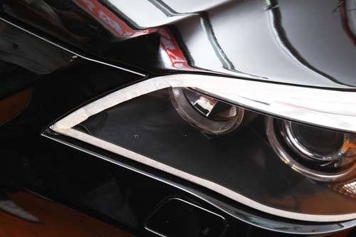 | 在進行美容之前會將燈具與膠條縫隙貼上膠帶,可防止殘膠、也可避免研磨劑將板金以外的部分打爛。 |