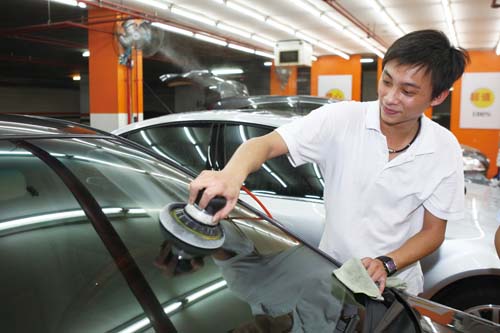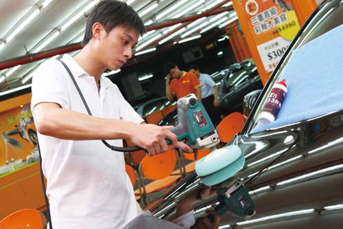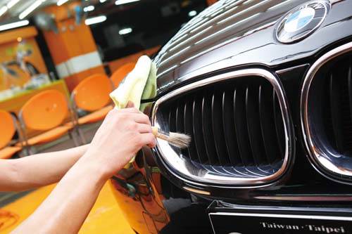 | 最後一道步驟就是修飾車身,超級A咖會另外用毛刷幫車輛進行清潔,讓愛車比新車時還要乾淨。 |