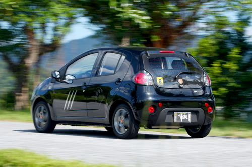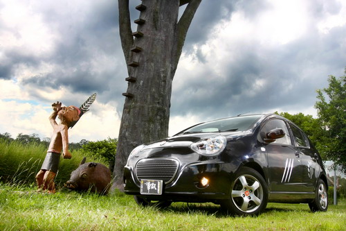 | 鈑件並沒有變動,僅在引擎蓋上黏貼了類似台灣黑熊的「V型胸斑」白色貼紙。 |