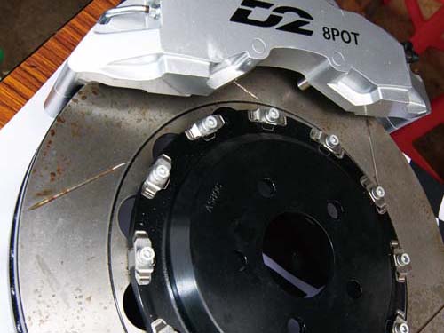 | 對向八活塞卡鉗配上兩片式浮動碟是D2主打的產品之一,不管你的愛車有幾匹馬力,其巨大的制動力道絕對穩穩將它停住。 |