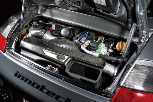 | 此動力系統比照9ff的改裝方式,使用996 GT-3 RS後期賽車引擎再加上渦輪系統,即可做出900匹的動力與超過350公里的時速! |