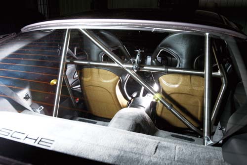 | 本車流用996 GT-2上的半套防滾架,除了增加車體剛性外亦可保護駕駛者的安全。 |