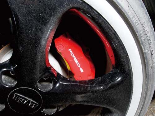 | 將原廠前煞車系統移植至後輪,是許多保時捷的一貫改法。 |