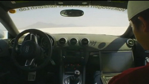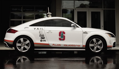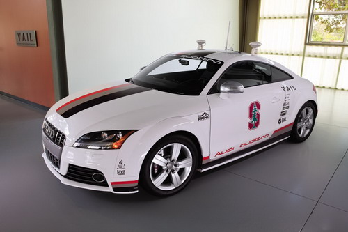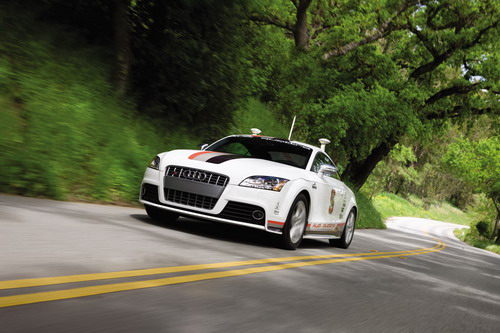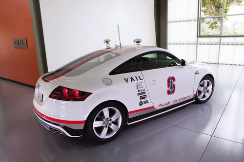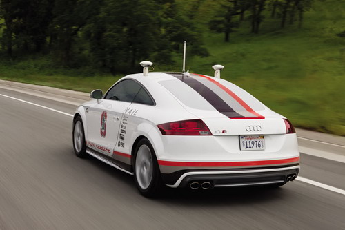 Audi這部無人測試車,是VW集團下的電子實驗室與Oracle公司、史丹佛大學動態設計實驗室所合作進行的一項實驗計畫,他們以一輛Audi TTS做為無人駕駛計畫的研發車款,並且在車尾廂內放置了兩部超級電腦,來快速運算車輛動態行駛的路線,同時再結合高精準度的「GPS」定位系統,來將車輛精準無誤地控制在車道內的中心線(誤差值在2公分以內),因此無論是城市中的大街小巷還是郊外的蜿蜒山路,皆能夠在無人駕駛的狀況下,安全無誤地高速行駛。