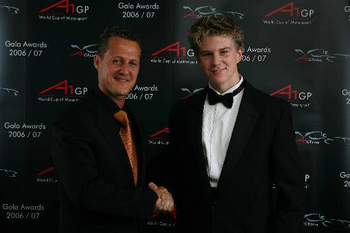 Schumacher日前受邀出席A1 GP在倫敦所舉辦的季末頒獎會,他讚揚幫助德國隊拿下2006/7年度總冠軍的Nico Hulkenberg將是德國未來的F1明星車手,這兩位車手的經紀人Willi Weber也十分贊同,他不僅是A1 GP德國隊老闆,也是Hulkenberg的經紀人。M.Schumacher表示,Hulkenberg具有很高的資質,雖然目前參加F1言之過早,但只要適當訓練,未來應可達成目標,成為車神接班人。