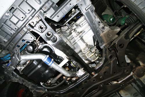 | 從變速箱與引擎結合獅頭來看,這具5MT相當適合4B11引擎,不過要讓車速錶正確作動還需從其它感應器擷取訊號,左岸完工價15萬元含 周邊與手排箱電腦。 |