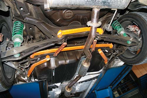 | 全車Summit拉桿加上Tein高低可調避震器,看來車主對改裝完整性相當執著,效用毋庸置疑。 |