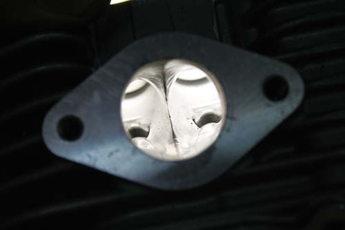 進排氣道的拋光除針對管壁外,進氣口分歧處磨成銳利狀都是研磨的重點,至於容易形成最大進氣阻抗的氣門導管處,也有必要切平外露 的凸出部或是做水滴形的研磨 |