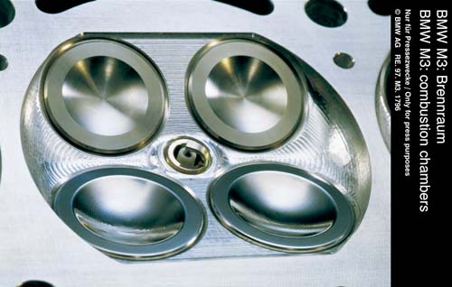 燃燒室的光滑度對於混合氣的渦流效應有著絕對的影響,至於氣門的加工與氣門做的加大,由於多氣門引擎已沒有多少空間可施工,因此 多半不會針對此處進行加工 |