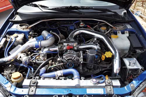 Trust TD06渦輪經過1.2Bar的高增壓後,能使這台EJ257輕鬆輸出400hp最大馬力。 |