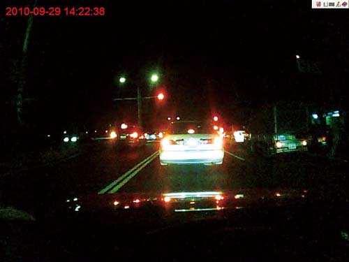 在實際路試時可以發現產品體積不大,且採用三個小吸盤組成的固定架,對於穩定鏡頭有不錯的效果,又不用擔心像大吸盤般傷害到隔熱紙的壽命,而前後皆具有鏡頭的設計,對於車輛左右側與後方的路況也多少能提供些畫面參考,車主開車的注意力,更是一覽無遺,有助於事故發生的責任釐清。至於拍攝影像畫質方面,白天時的畫面相當清晰,車牌數字在車頭不遠處即可辨識出來,各項GPS行車資訊也會一併出現在電腦畫面中,提供的資訊愈多愈有法律上的參考價值。而晚上時的拍攝畫質,雖稱不上完美,但表現至少在中上水準,並沒有因結合其他功能而有所犧牲。