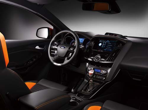 | 新一代的MyFord Touch也會延用在Focus ST上,黑橘相間的內裝配色與戰鬥風格的車室頗有相輔相成之效。 |