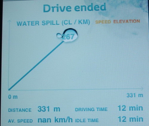 | 最後會以行駛距離與溢出水量換算出每公升的油耗值。 |