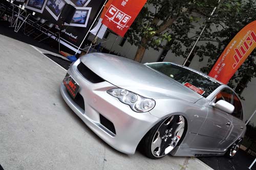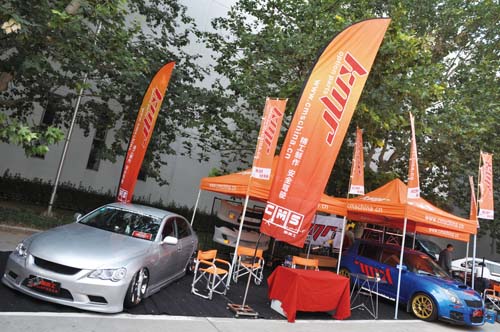 車美士本屆參展陣容雖不算大,但從車型展出方面可看出其產品已經完全覆蓋市面上大部分車型,從小型車Swift、中型車Lancer EX到行政級的Reiz都有涉及。同時除了銷售自己研發的KMR車身強化套件、KMR排氣系及KMR避震器外,同時還代理了台灣Simota進氣系統以及飛競空力套件,讓來店的顧客能將愛車一次改裝的均衡又漂亮。