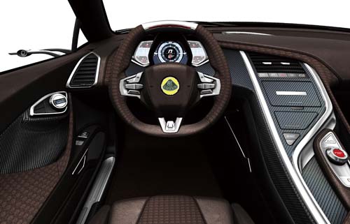 長車頭、短車尾的比例讓整部車的身型看起來極為修長,而有著弧形肌肉曲線的前葉子板搭配極度前傾的腰線,讓它顯得更加玲瓏有緻且曲線畢露,自然而毫不做作並符合現今最新空氣力學概念對造型的要求。在車艙架構方面,為了讓這部2+2敞篷跑車足以與現今市場上的指標車款相匹敵,車內將加入前所未見的豐富配備如液晶螢幕、衛星導航等高檔配備,動力系統則與New Esprit相同使用由Toyota供應的5.0升V8引擎與機械增壓,可輸出620匹最大馬力並可加入Hybrid油電複合動力系統,讓這部Lotus敞篷跑車僅需3.7秒就可完成0~100km/h加速,極速達到315km/h。