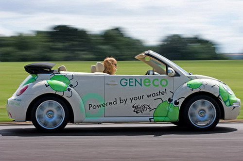 位於英國Bristol的一家能源開發公司「GENeco」,其公司最主要的業務就是廢棄物的處理,不過對於永續能源的開發更是不遺餘力,於是推出了這一輛「環保糞金龜」,將其動力系統改造成可以使用「甲烷」為燃料動力的設計,而這甲烷的生產則是來由人類的排泄物進行提煉轉化而成。根據「GENeco」所進行的實驗測試,證明這輛敞篷金龜車在使用了70個英國家庭廁所排泄物所提煉出的甲烷氣體,可讓車子行駛超過1萬6千多公里的路程,相當是一輛車子1年左右的行駛里程。