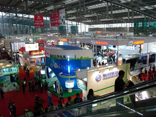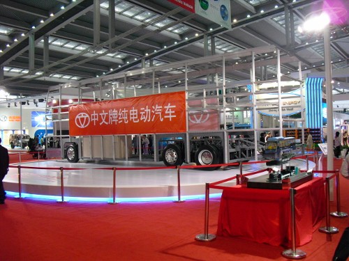 會場的規模不大;1、2館的展場面積大約與台北「世貿一館」相當,畢竟電動車產業僅是新興工業、不論是廠家數目或是產品都不若傳統汽車那般豐富,因此展場面積不大也就不令人意外了。整場展覽約略可以歸納出四個重點,首先是「大型電動公車」成為當前中國地方政府試行電動車政策的主要車型!除罕見的「超大型轉盤」展示了由山東中文沂星公司所製造的電動雙層公車外,就連「號稱」擁有先進電動車技術的深圳比亞迪汽車也展出「K9電動巴士」,可見得大眾運輸系統將會是首波純電動化的交通工具。