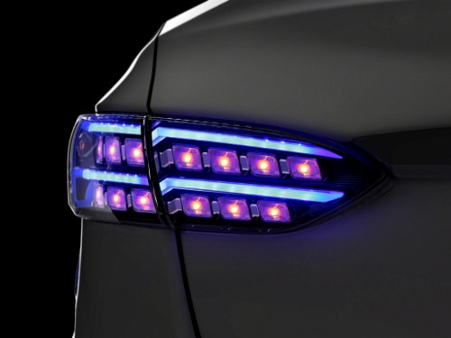 | 動感流暢的尾燈在停車時會散發出代表潔淨科技的藍光。 |