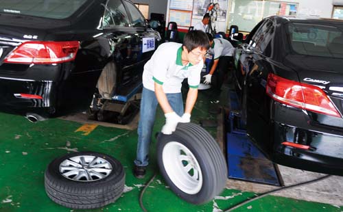 | 在彰化的Bridgestone經銷中心進行換胎,讓EP100A與BS現行產品可做出對照。 |