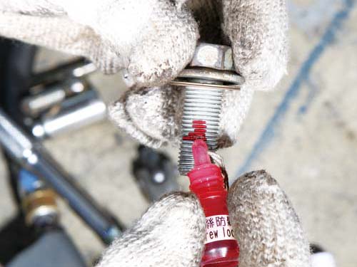 | 煞車系統結合螺絲需要承受極大的力量,所以VTTR附贈一瓶螺絲防鬆劑來避免螺絲鬆動。 |