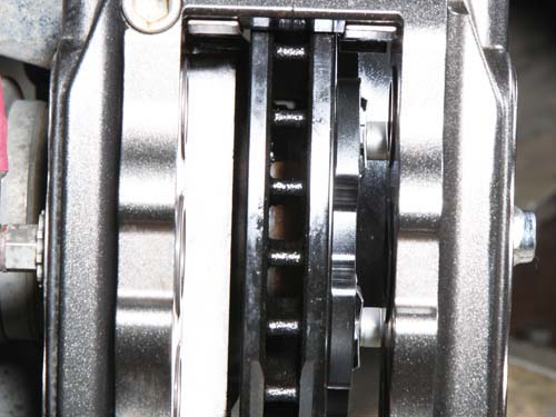 | 卡鉗裝上去之後要注意碟盤是否在中間位置,這樣才能確保兩側活塞距離相同,避免發生吃單邊的問題。 |