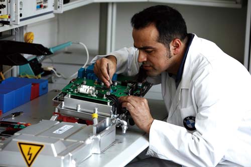 | 進入純電動車世代後,過去維修汽車滿身油汙的情況將成為歷史,取而代之的是身著乾淨服裝的工程師。 |