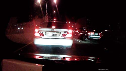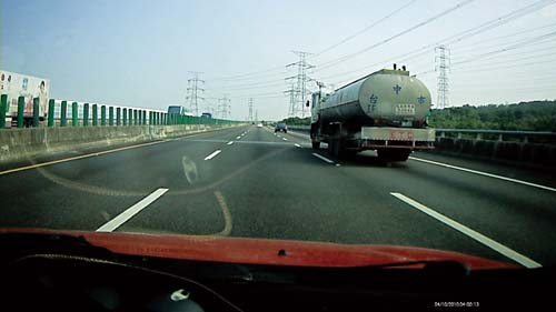 整體的設計與品質皆已相當成熟,畫面的品質也沒有令人感到失望,白天所拍攝到的畫面清晰度,雖然沒有HD DV般的超高解析度,但所呈現出來的影片品質卻是所有受測產品中的佼佼者,不論是光線的反應、暗部的清晰度或色彩的真實性等,都有著相當優異的表現,在14吋的電腦螢幕上即使採用全螢幕觀看,2公尺處的車牌號碼依舊清楚可辨,加上鏡頭焦距達120度,車側兩旁的狀況可完全掌握,因此若希望能買到一部畫質清晰的產品而不考慮到預算的話,它將是值得筆者推薦的優質產品。至於夜間使用的情況又是如何呢?從實際拍攝到的影片來看,畫面的清晰度表現依舊理想,即使在昏暗不明的省道上,依舊可獲得不錯的車牌辨識度,更重要的是不會因煞車燈的照射而發生影像眩光的情形,這點也是值得讚許的地方。