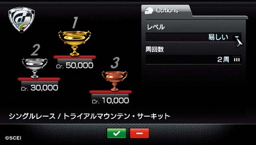 | 競賽項目包括單圈計時挑戰、實際競賽與甩尾賽共三個項目,加上豐富的賽道選項,要全部玩透仍需要一些時日 |
