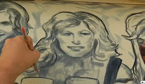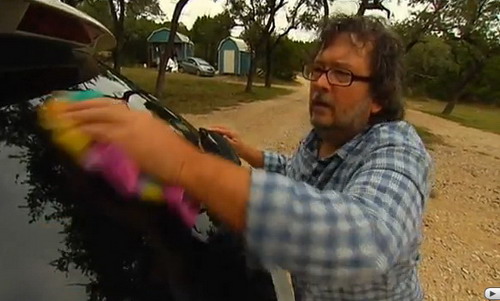 | 髒車藝術發明人Scott Wade示範在乾淨玻璃作畫過程。 |