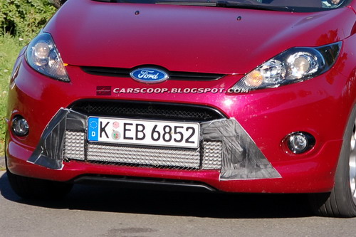 這組間諜照是Fiesta ST在德國Nurburgring賽道進行測試時被國外的狗仔所偷拍到,整車除了前保桿兩側以及後分流器仍被貼布遮蓋之外,車身其他部分皆已「公諸於世」,因此我們可以清楚看出,這部Fiesta ST小鋼砲的外觀造型,將比一般標準版車型來得更「殺氣騰騰」!