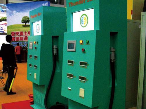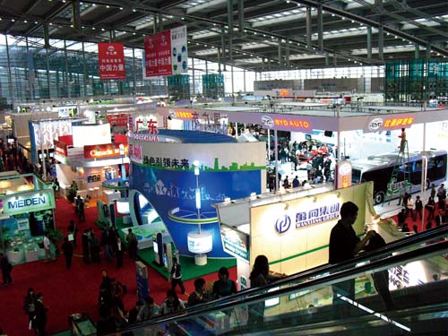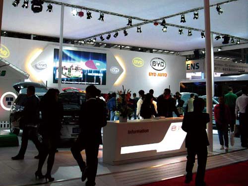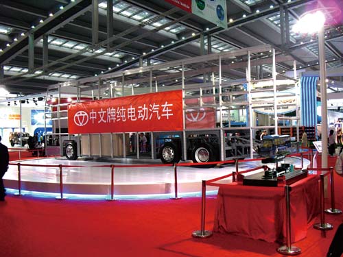 會場的規模不大,1、2館的展場面積大約與台北「世貿一館」相當,畢竟電動車產業僅是新興工業、不論是廠家數目或是產品都不若傳統汽車那般豐富,因此展場面積不大也就不令人意外了。整場展覽約略可以歸納出三個重點。首先是「大型電動公車」成為當前中國地方政府試行電動車政策的主要車型!除罕見的「超大型轉盤」展示了由山東中文沂星公司所製造的電動雙層公車外,就連「號稱」擁有先進電動車技術的深圳比亞迪汽車也展出「K9電動巴士」,可見得大眾運輸系統將會是首波純電動化的交通工具。