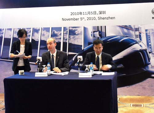 | Bosch在華已經有100年的歷史(1909年在上海開設亞洲第一家貿易辦事處),在此次大會中,由兩位重量級人士──陳玉東執行副總裁(右)、電力驅動業務Dr.Ramesol Ingo總經理共同說明Bosch未來的計劃。 |