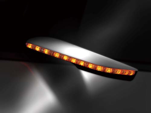 | Luxgen Neora飛翼造型的左右後視鏡,除了內嵌方向燈,也配備車側安全影像系統以及環景影像系統的攝影機。 |