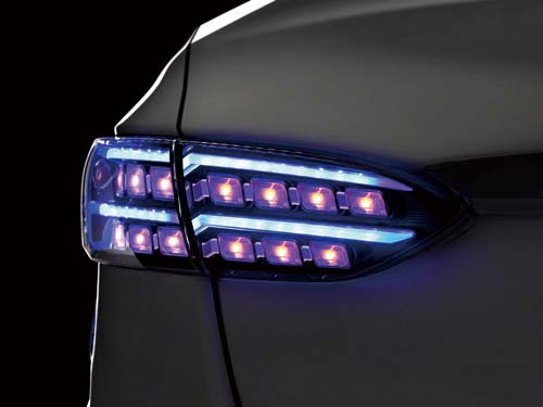 | 動感流暢的尾燈在停車時會散發出代表潔淨科技的藍光。 |