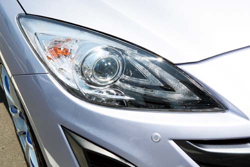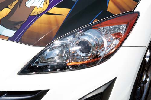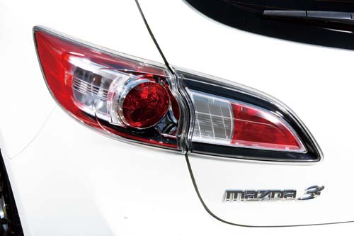 New Mazda 3無論是1.6、2.0或是2.5S其實外觀空力套件都是雷同,不過唯一可分辨出來的部分除了雙管及單管排氣管外,車頭大燈及尾燈的設計都是破綻之處,很明顯的就可看車,2.5S原廠燈具(銀色)與一般版本的大不同處,不過真的要說筆者只覺得有無內崁反光片而已,因為大家也都是魚眼頭燈,最多就是有無HID的配置,尾燈的部分也僅是反光片的有無,2.5S的燈具似乎較為和風的清新感,這部分在交車時期時就可以與業務溝通看看,要怎麼更換囉。