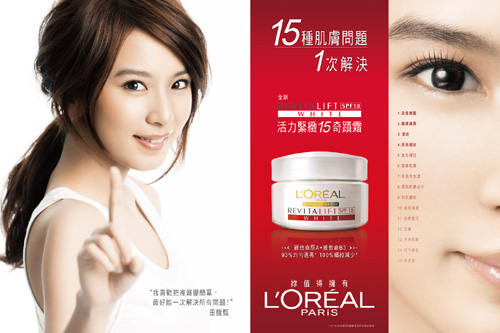 | L’Oreal Paris Revitalift White Cream巴黎萊雅 活力緊緻 15奇蹟霜SPF 18,容量50mL/建議售價NTD690元,2011年1月起公開銷售。 |