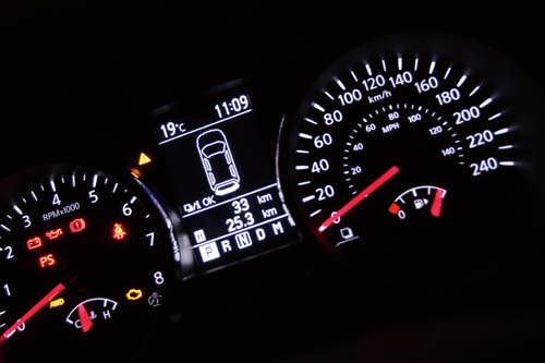 在實用層面;原本僅在圓型單色顯示幕兩側、利用液晶刻度顯示的「油量錶」、「水溫錶」,現在也被獨立了出來,分別位於轉速錶與時速錶下方以「指針式」呈現前述兩項資訊,徹底改善了以往因顯示不明顯、容易錯過加油時機的缺點。方向盤後方的「換檔撥片」可要珍惜使用了!因為美規車型已經取消這項設計,這可是總代理「裕隆日產」特地向母廠爭取的台灣專屬配備!從此不僅看出Nissan Rogue的市場定位外,也凸顯了它的高C/P值特性。
