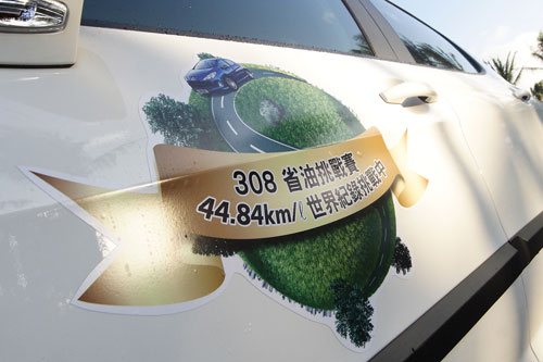 2010年第三屆 “308 省油挑戰賽” 活動已於12/1圓滿落幕,由2009年改寫紀錄、創造36.46km/L優異油耗成績的潘咸良 / 林靖峰,及2008年成功超越金氏世界紀錄、締造32.82km/L的許正和 / 許玉容,與來自台灣各地由網路徵選出之5組參賽者,共7組參賽車輛,一同駕駛搭載全新Euro5歐洲五期柴油引擎之308 1.6 HDi,全車並採用米其林Energy Saver GREEN X節能胎,添加台塑石油之10ppm低硫環保柴油,經過兩天一夜操控體驗與油耗測試,共有5組參賽者成功超越2009年之36.46km/L油耗成績,7組參賽車輛平均油耗更達37.50km/L。其中,6號參賽車輛的方俊翔 / 李宗倫以39.60km/L優異表現脫穎而出,獲得雄獅旅遊推薦之法國雙人10日遊;而僅以0.02km/L些微差距列居第二名之3號參賽車輛賴正偉 / 王菁穗,也以39.58km/L之成績獲得GIGABYTE T1005M旋轉觸控平板電腦乙部。