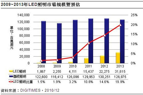 DIGITIMES:環保意識及政策推動 2013年全球LED照明產值滲透率望升近二成
