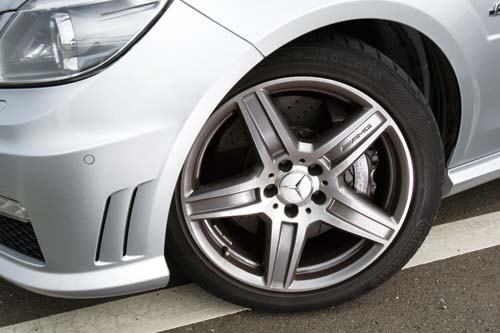 | E63 AMG Estate外觀雖不致於誇張、暴力,但18吋鈦銀鋁圈與前6/後4活塞卡鉗碟盤組依舊呈現了十足張力! |