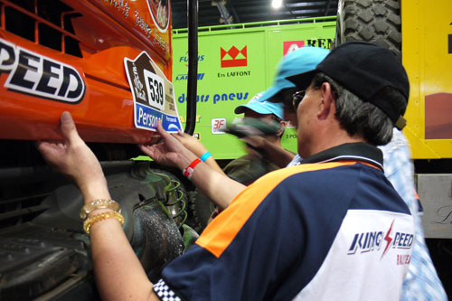 甫於當地時間12月27日晚間抵達阿根廷的台灣代表隊一行人,經過一晚短暫的休息後,便開始緊鑼密鼓地進行比賽車輛的整備與車身彩繪的黏貼,以面對繁複且嚴格的賽前驗車程序,經過多日的準備,大媽祖號終於完成所有檢整工作,並順利完成驗車程序,駛進大會指定的停車區內,等待元月1日的發車典禮。據台灣代表隊長-陳和皇表示:「有了2010年參賽的經驗後,賽前報到與驗車工作可說是順利許多,加上當地僑胞的大力協助,讓台灣代表隊成員能有更充分的準備,以迎接2011年的達卡賽事挑戰,期盼能爭取到好成績,讓全世界看到台灣媽祖堅忍不拔的刻苦精神。」