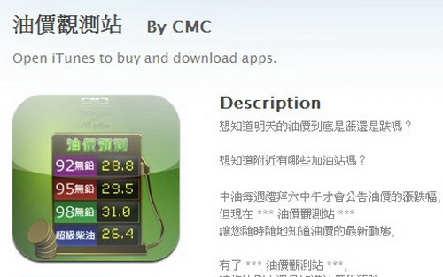 | iPhone用戶可至App Store免費下載「油價觀測站」軟體,可讓你提前知道下週油價的漲跌訊息。 |