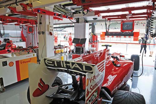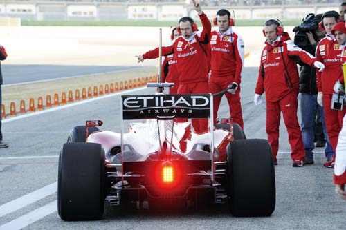 | Ferrari是大車隊中首先開始抄襲失速尾翼者,圖中亦可看到尾翼前的圓柱型結構。 |