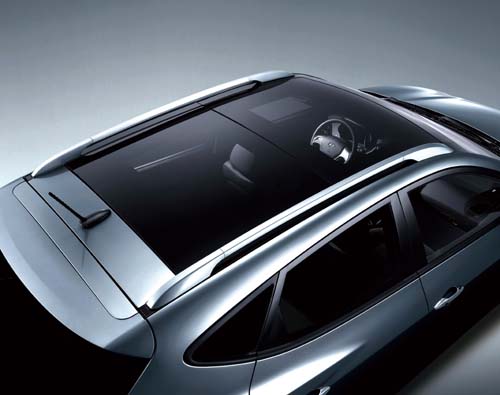 | 旗艦車型的全景式電動玻璃天窗是ix35的重點配備,且擁有的代價可是高貴不貴。 |
