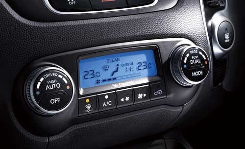 除了搶眼外在外,ix35的內涵也不遑多讓。原廠將ix35分成三個等級,除了車價最低的入門車型外,翻開ix35的配備清單就發現原廠誠意十足。尊貴級車型就標配了定速、駕駛座八向電調座椅附電動腰靠、雙區恆溫空調與空氣清靜機等功能。此外,ix35具備整合MP3的一體式音響主機,搭配中控台下方對應iPod及透過Aux-in、USB等插槽的外部音源聯結功能,讓音響系統的應用更為廣泛。而頂級旗艦車型除囊括前述配備外,另外還備有Smart Key+Push Start與全景式電動天窗兩項配備,在配備的豐富程度上相當強勢,尤其在加入車價精算後更顯超值。