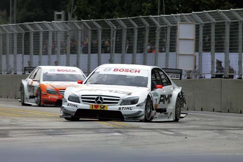 過程中還是有五位車手因高速壓斑馬線打滑而陸續發生輕重不等的碰撞事故,極度不確定因素對DTM車隊與車手都是十分特殊的考驗,在排位賽結束後最終由賓士軍團包攬了前三個排位,英國車手保羅-雷斯塔拿下杆位,他的隊友加裏-帕菲特與傑米-格林分列二、三位,在Audi與Benz兩強之爭的對決戲碼中,似乎賓士仍佔據優勢與先機。