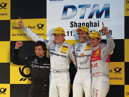 | 堪稱Audi與Benz兩大之爭的DTM上海戰,雖然Audi軍團未能完全戰力,但最終車手蒂姆 謝德仍是拿回一座季軍稍稍挽回顏面。 |